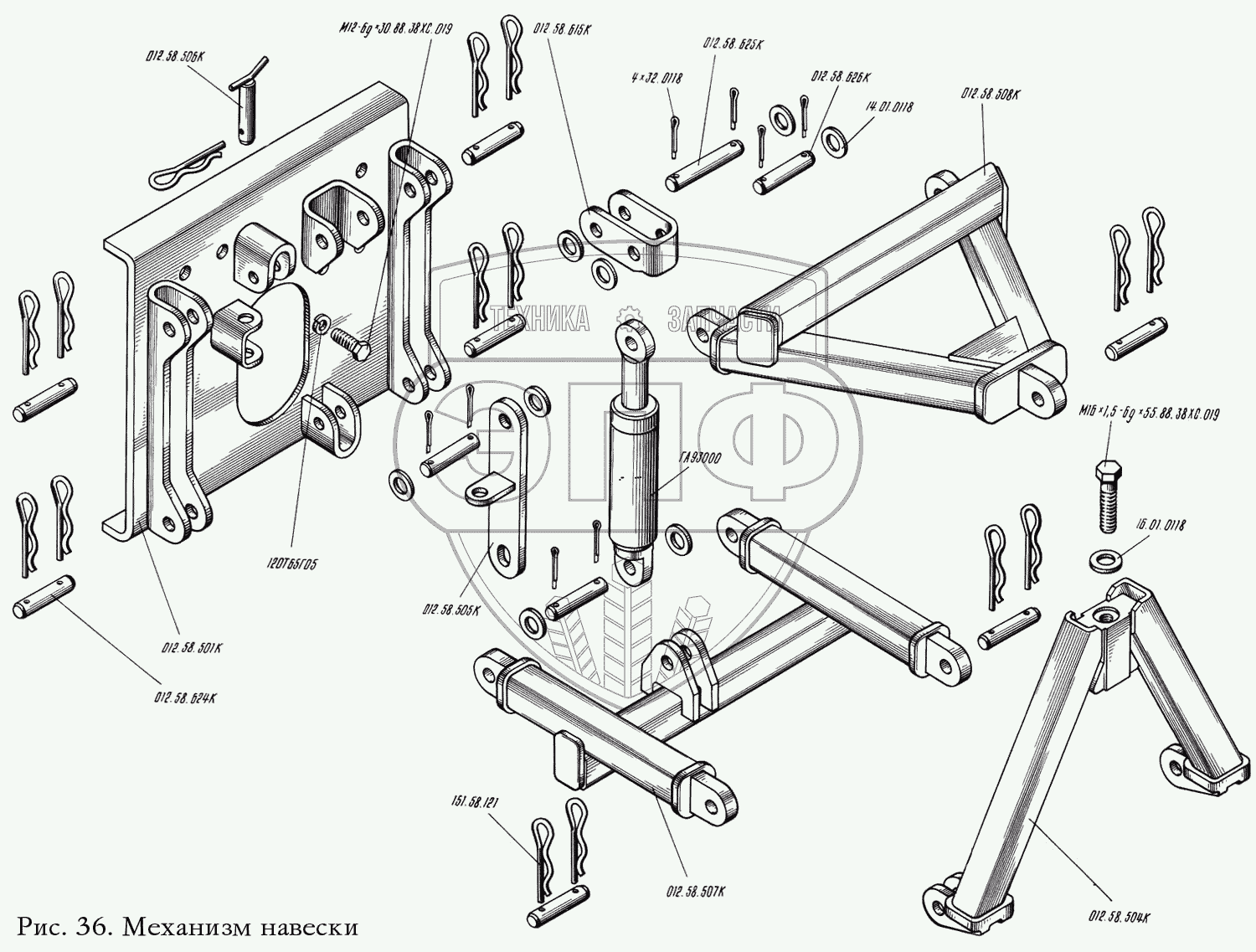 Каталог запасных частей к технике: КМЗ-012. Механизм навески 012.58.500К
