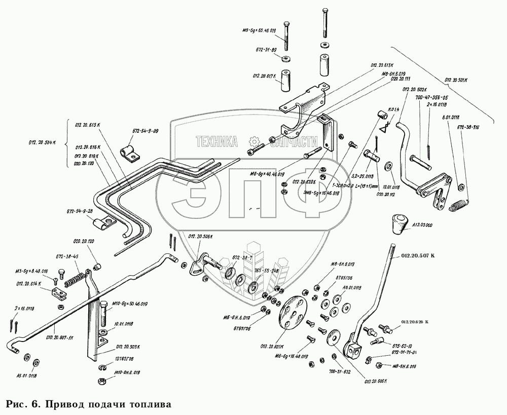 Каталог запасных частей к технике: КМЗ-012. Привод подачи топлива 012.20.500К