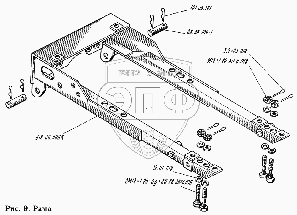 Каталог запасных частей к технике: КМЗ-012. Рама 012.30.500К