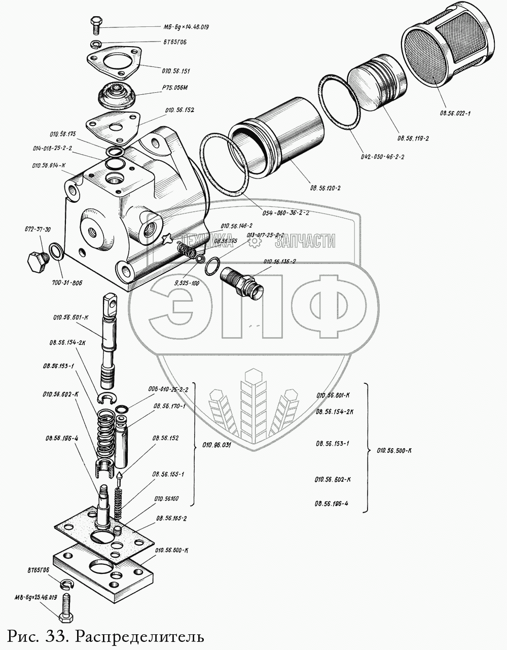 Каталог запасных частей к технике: КМЗ-012. Распределитель 010.56.504-К