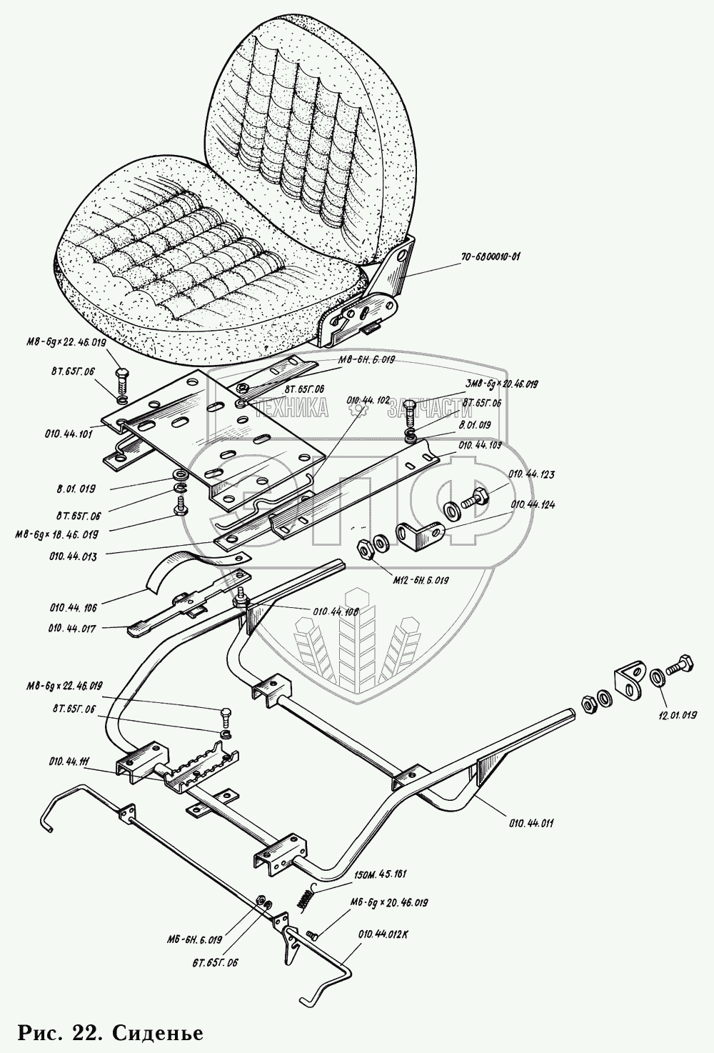 Каталог запасных частей к технике: КМЗ-012. Сиденье 010.44.001