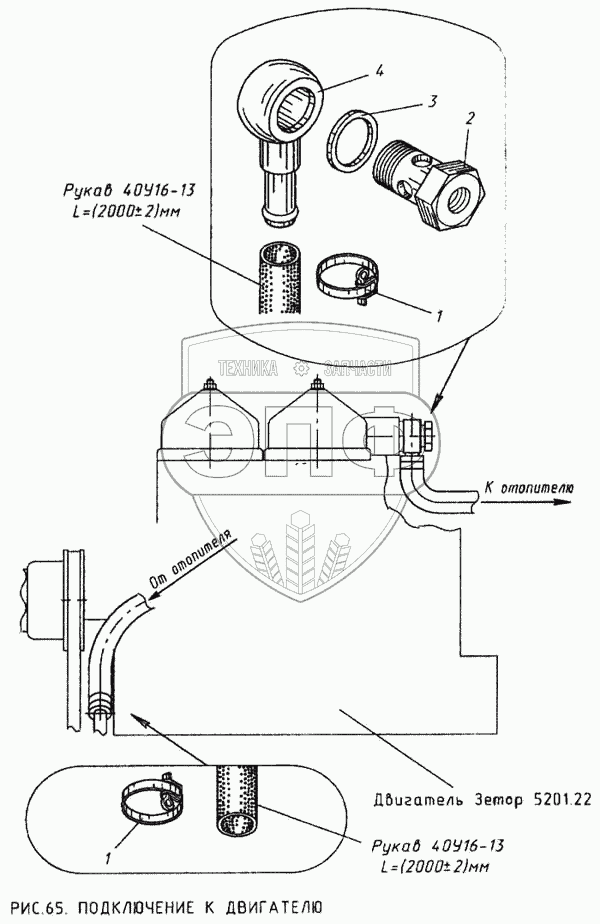 Каталог запасных частей к технике: КМЗ МКСМ-800. Подключение к двигателю