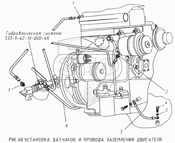 Каталог запасных частей к технике: КМЗ МКСМ-800. Установка датчиков и провода заземления двигателя