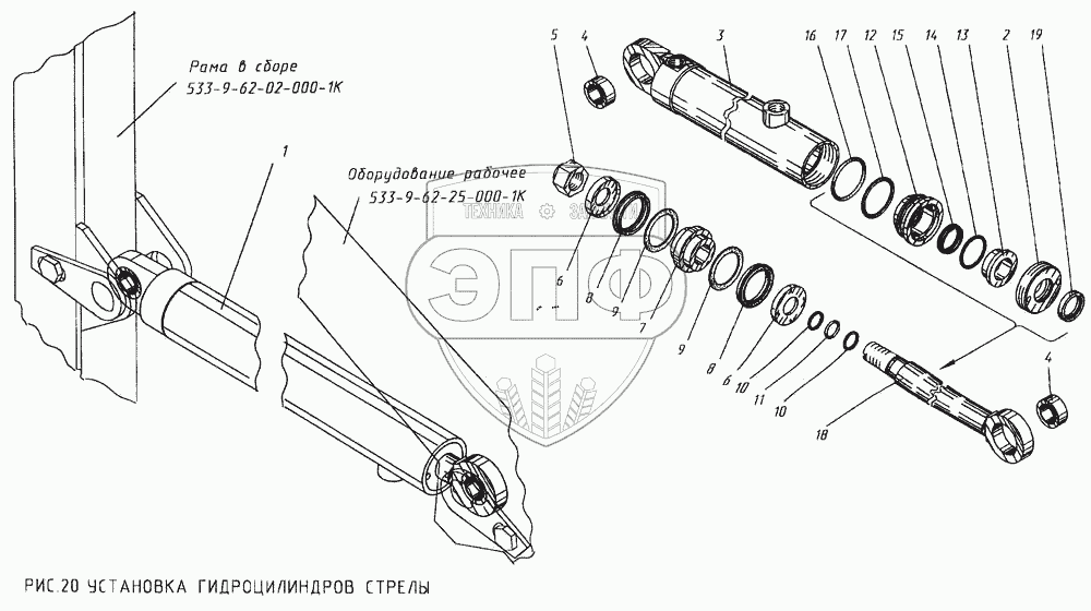Каталог запасных частей к технике: КМЗ МКСМ-800. Установка гидроцилиндров стрелы