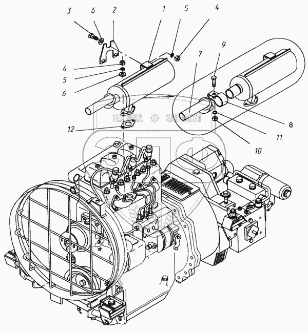 Каталог запасных частей к технике: КМЗ МКСМ-800. Установка глушителя