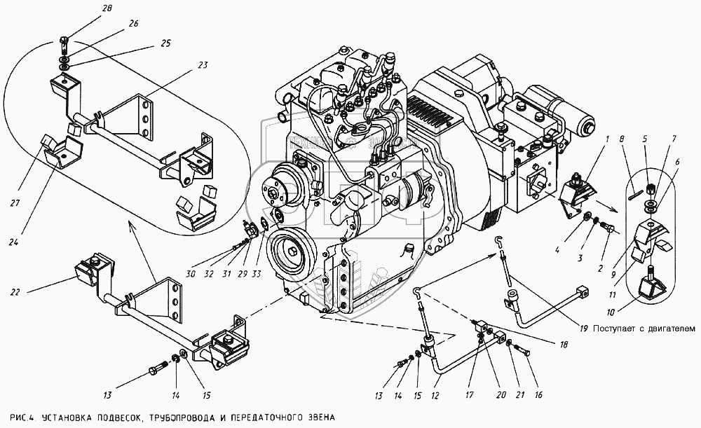 Каталог запасных частей к технике: КМЗ МКСМ-800. Установка подвесок, трубопровода и передаточного звена