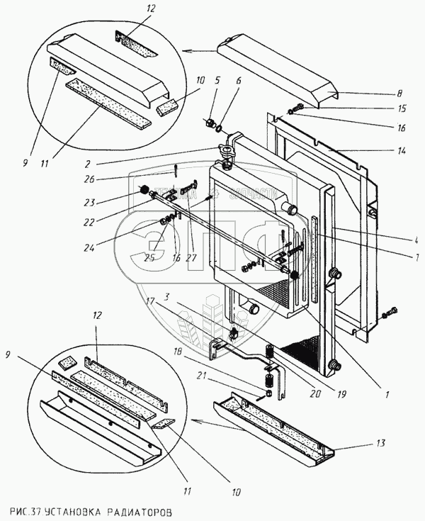 Каталог запасных частей к технике: КМЗ МКСМ-800. Установка радиаторов