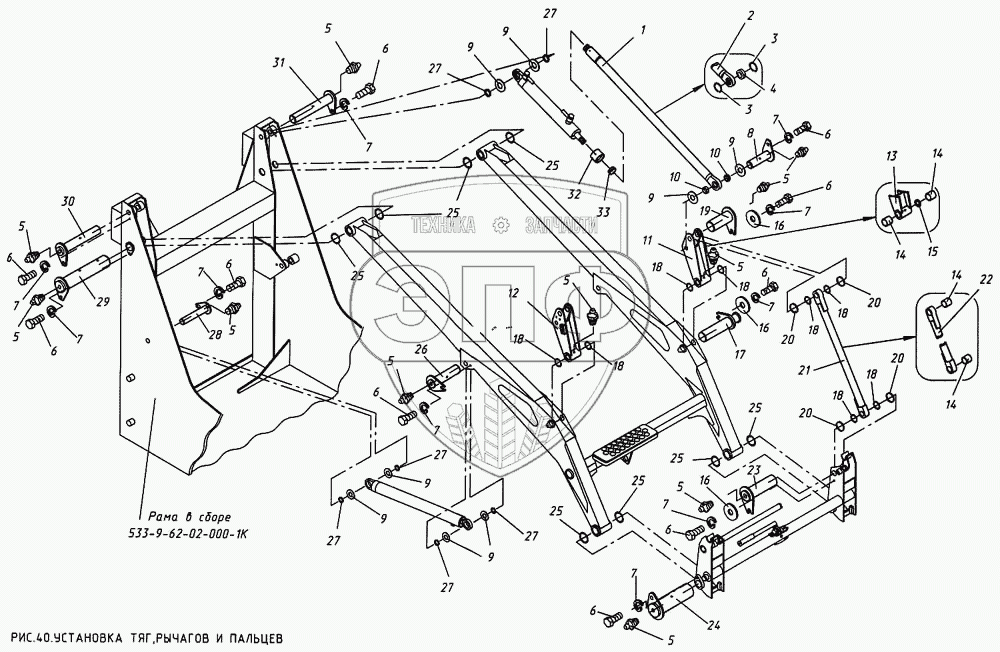 Каталог запасных частей к технике: КМЗ МКСМ-800. Установка тяг, рычагов и пальцев