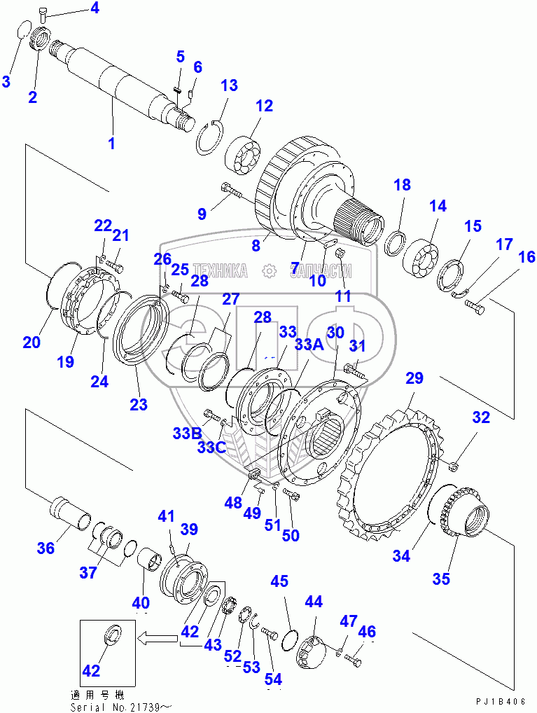 Каталог запасных частей к технике: Komatsu D155C-1. FINAL DRIVE GEAR AND SHAFT