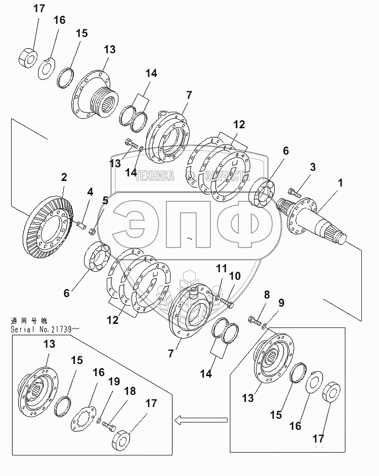 Каталог запасных частей к технике: Komatsu D155C-1 (спец.). BEVEL GEAR AND SHAFT