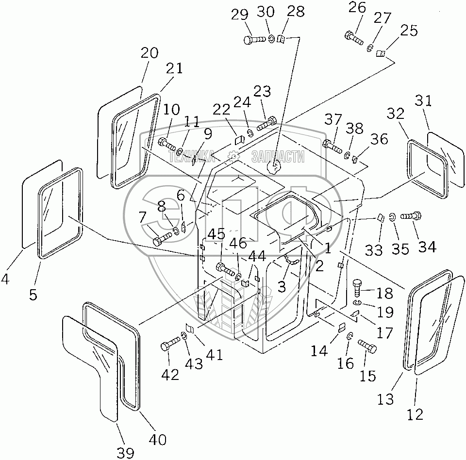 Каталог запасных частей к технике: Komatsu D155C-1D. CAB (SIDE WINDOW)