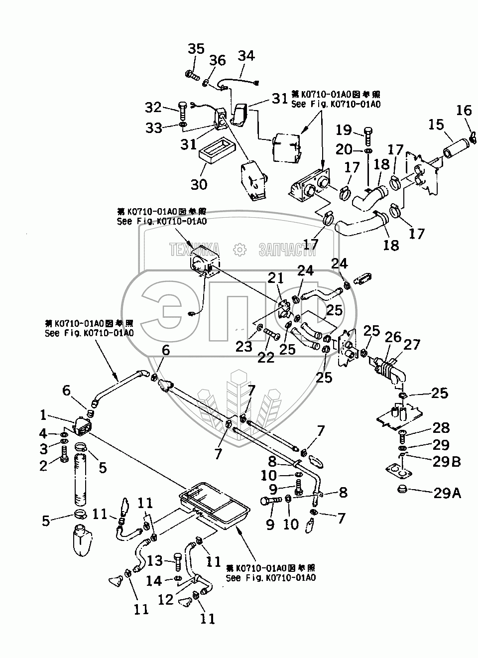 Каталог запасных частей к технике: Komatsu D155C-1D. DUCT RELATED PARTS