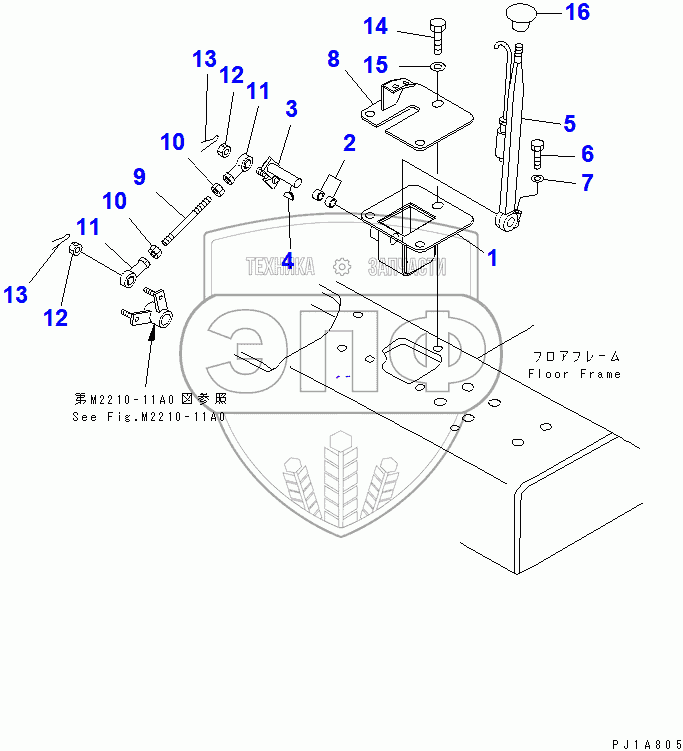 Каталог запасных частей к технике: Komatsu D155C-1D. RADIATOR SHUTTER CONTROL LEVER