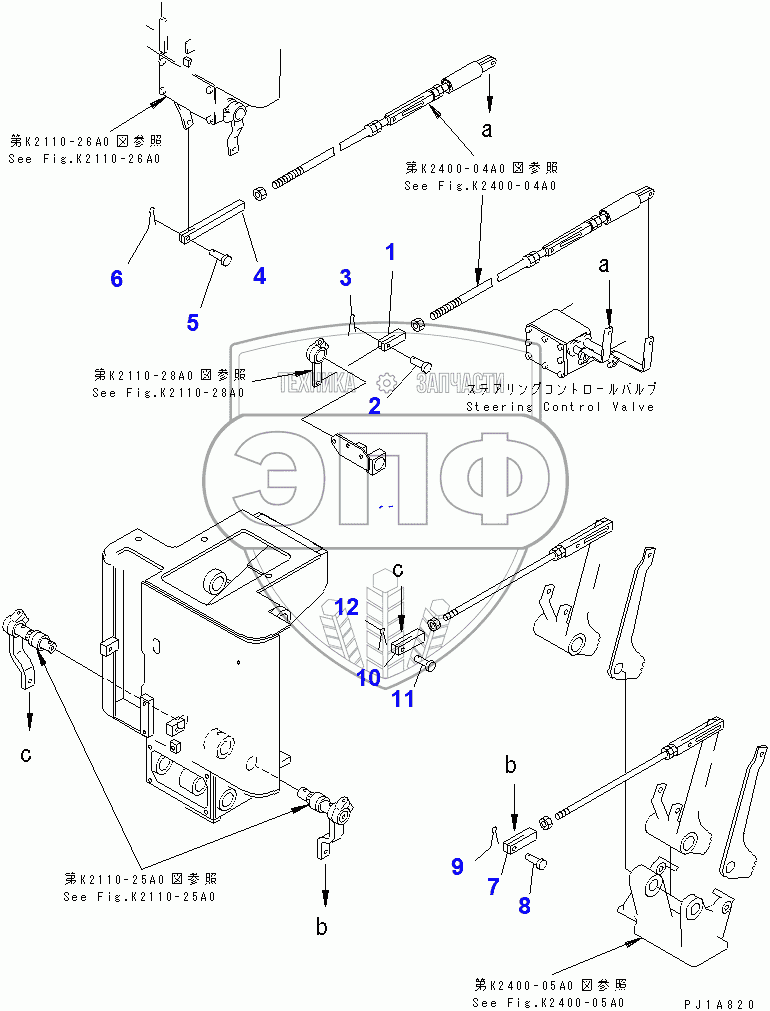 Каталог запасных частей к технике: Komatsu D155C-1D. STEERING AND BRAKE PEDAL LINKAGE