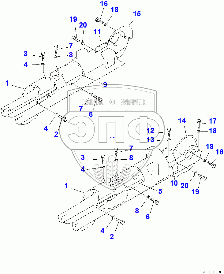 Каталог запасных частей к технике: Komatsu D155C-1D. TRACK FRAME COVER