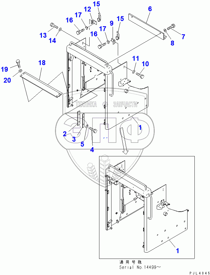 Каталог запасных частей к технике: Komatsu D355C-3. RADIATOR GUARD
