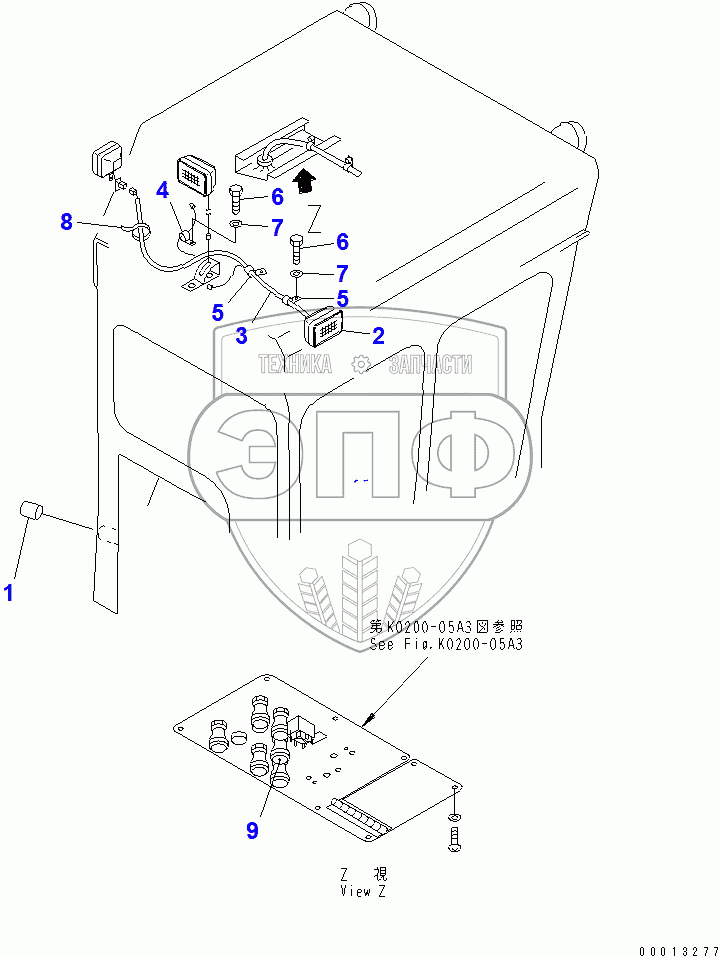 Каталог запасных частей к технике: Komatsu D355C-3. CAB (WORKING LAMP)