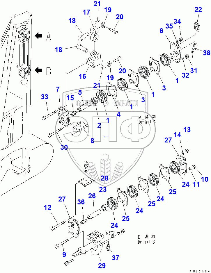Каталог запасных частей к технике: Komatsu D355C-3. HOOK AND BLOCK