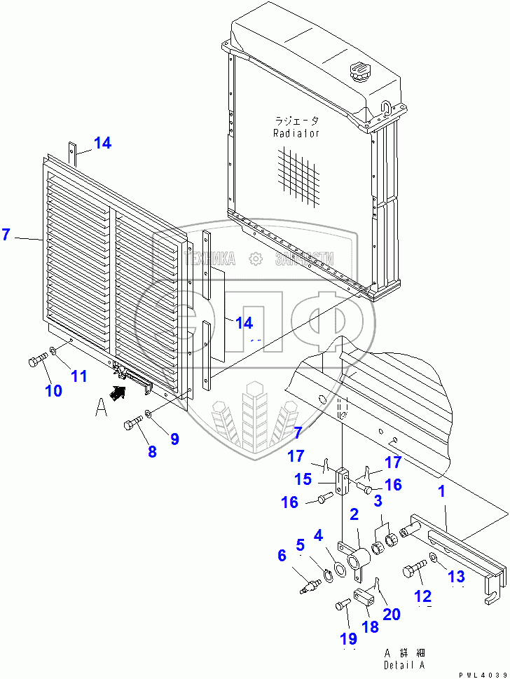 Каталог запасных частей к технике: Komatsu D355C-3. RADIATOR SHUTTER CONTROL