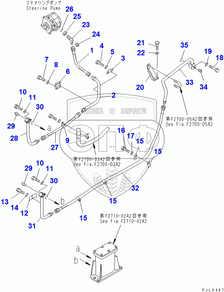 Каталог запасных частей к технике: Komatsu D355C-3. STEERING PIPING (2/3)