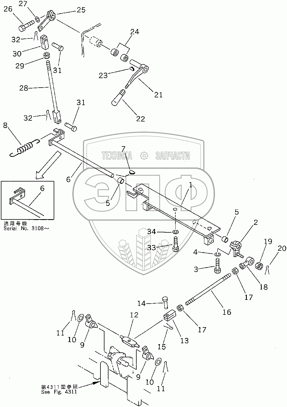 Каталог запасных частей к технике: Komatsu D85A-21. PARKING BRAKE LEVER (35001-)