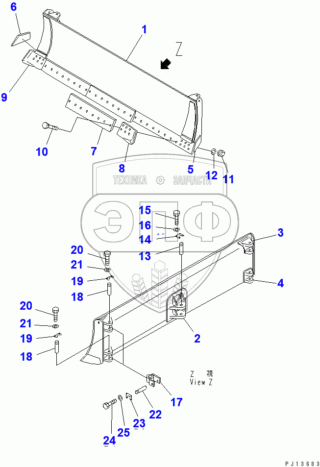Каталог запасных частей к технике: Komatsu D85A-21. ANGLE BLADE (36534-37821)