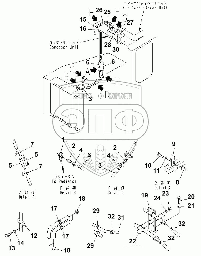 Каталог запасных частей к технике: Komatsu D85A-21B. HEATING PIPING(36441-)