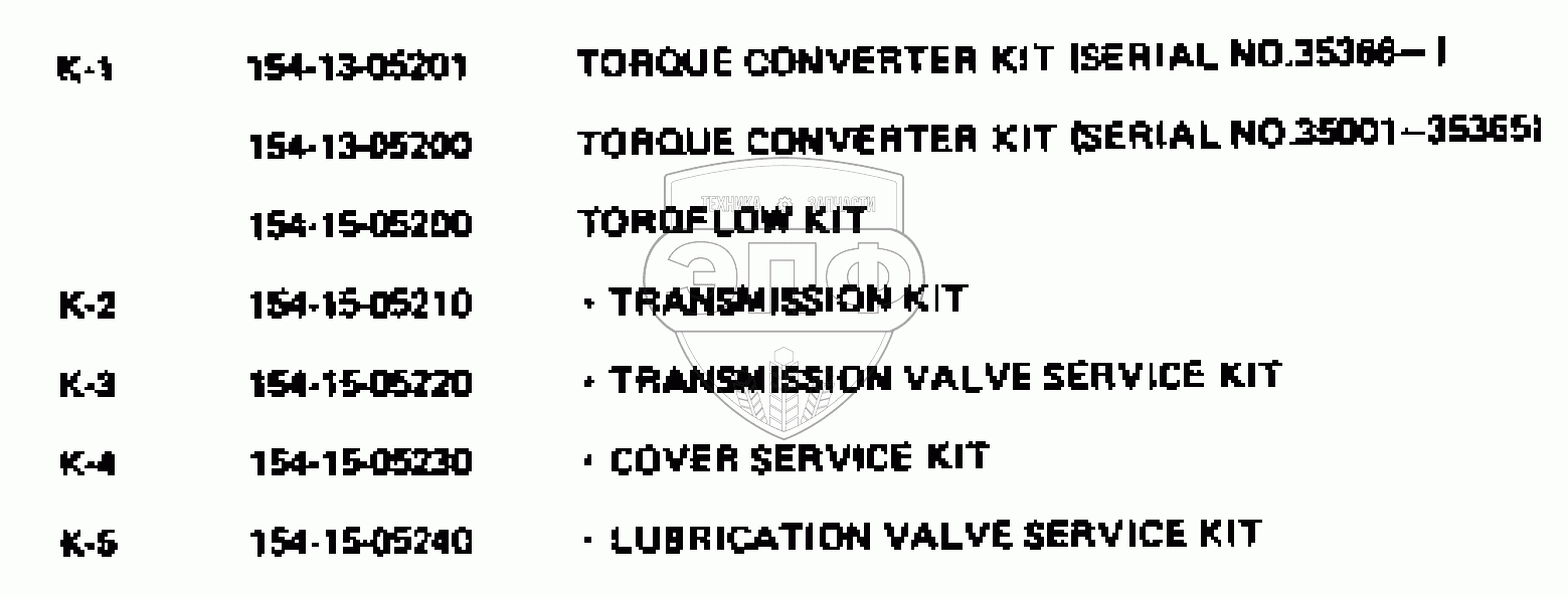 | 154-13-05201 | 154-13-05201 | SERVICE KIT, TORQUE CONVERTER | Нет на складе | |