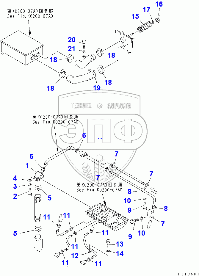 Каталог запасных частей к технике: Komatsu D85C-21A. CAB (DUCT RELATED PARTS)