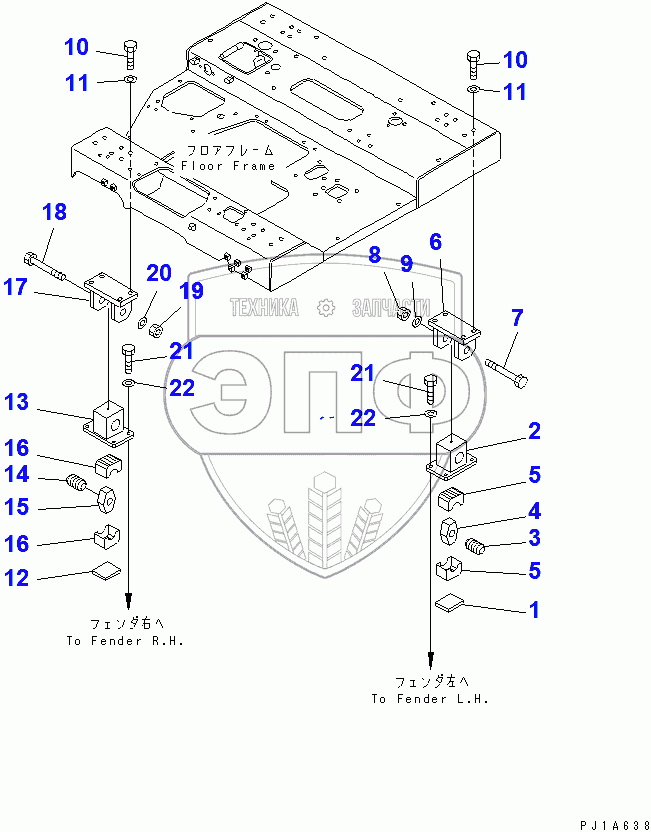 Каталог запасных частей к технике: Komatsu D85C-21A. FLOOR FRAME MOUNT