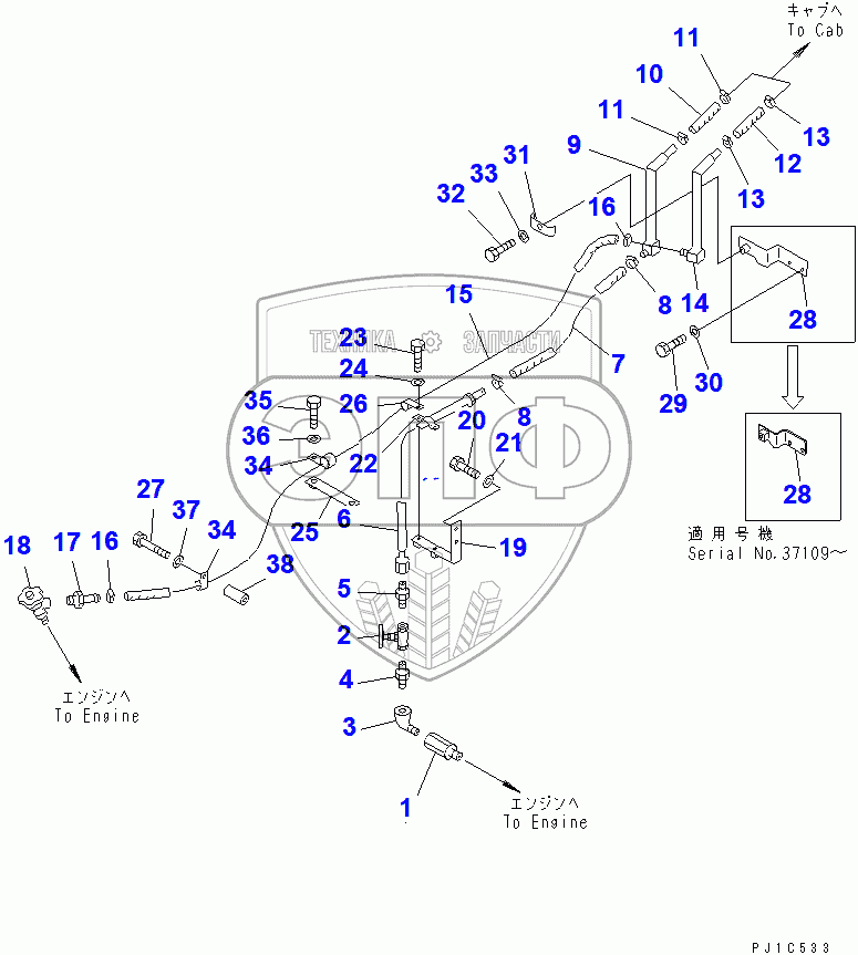 Каталог запасных частей к технике: Komatsu D85C-21A. HEATER PIPING