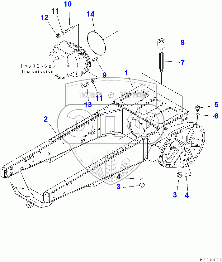 Каталог запасных частей к технике: Komatsu D85C-21A. STEERING CASE FRAME