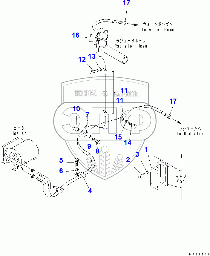 Каталог запасных частей к технике: Komatsu PC200-6. CAR HEATER (CLIPING)(96514-)