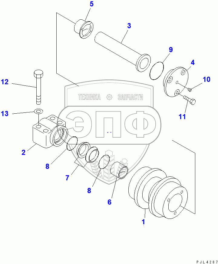 Каталог запасных частей к технике: Komatsu PC200-6. CARRIER ROLLER(106778-)