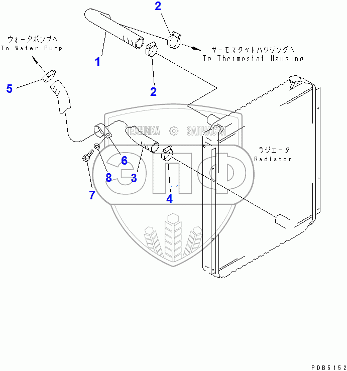 Каталог запасных частей к технике: Komatsu PC200-6. COOLING (PIPING)(96514-)