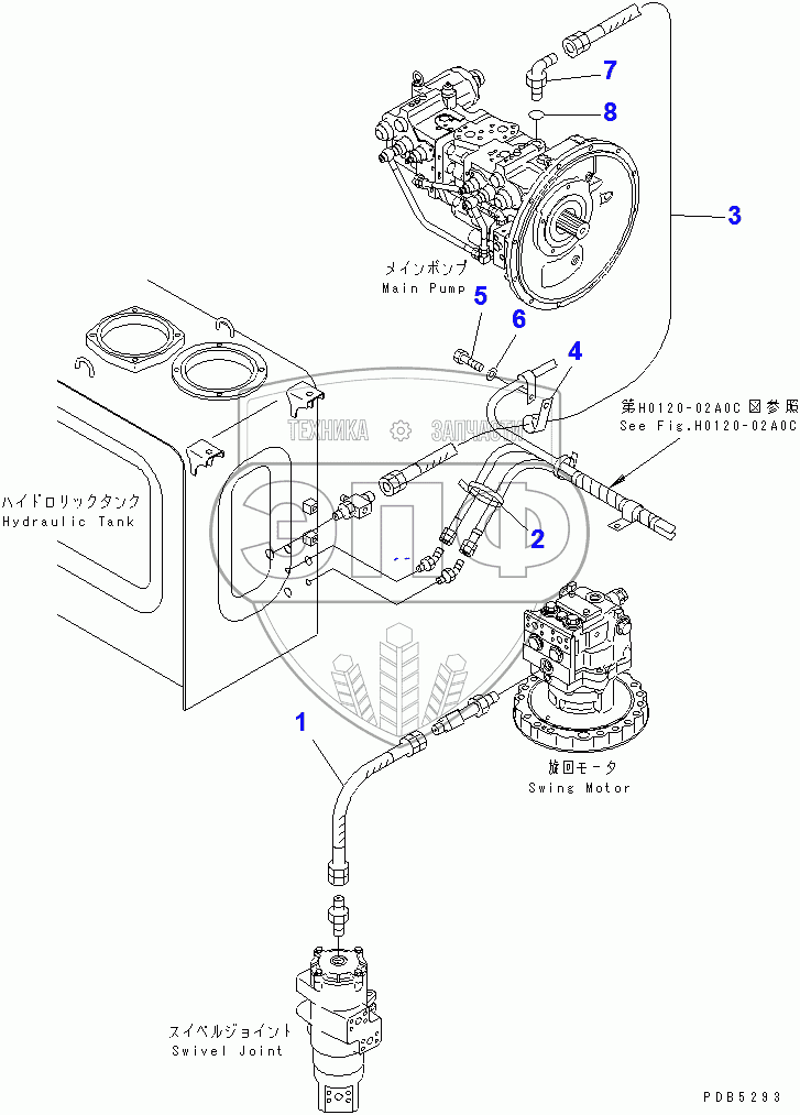 Каталог запасных частей к технике: Komatsu PC200-6. DRAIN LINE(94999-96513)