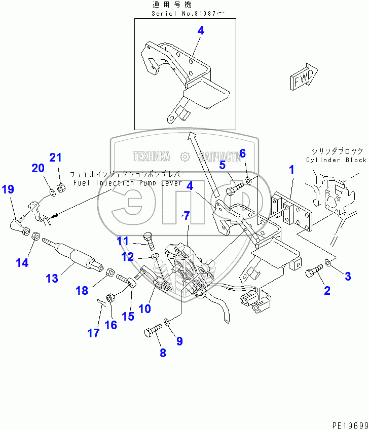 Каталог запасных частей к технике: Komatsu PC200-6. FUEL CONTROL(80001-94998)