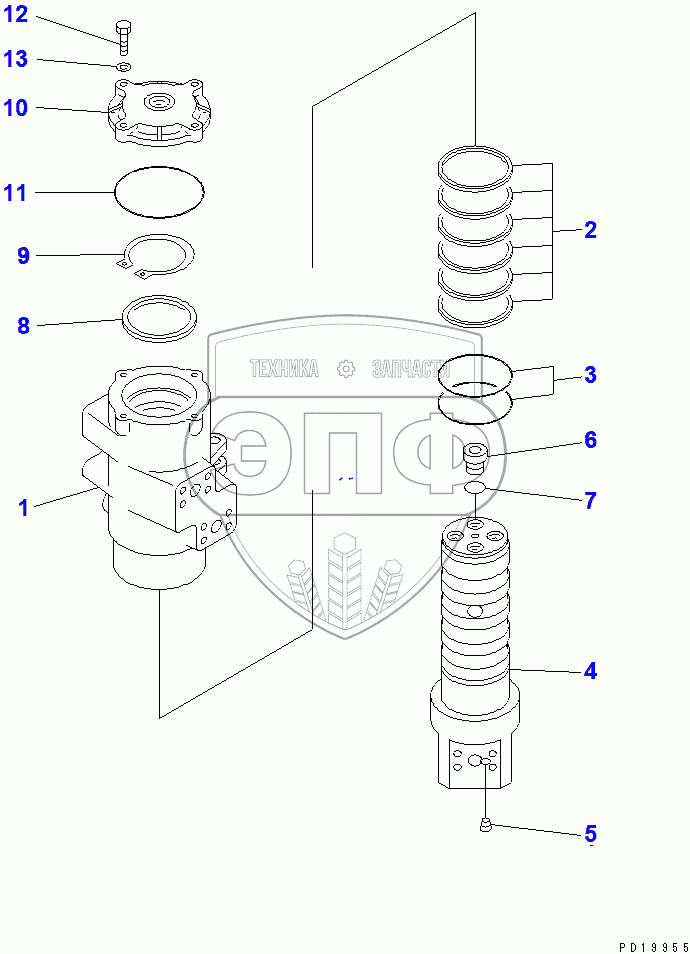 Каталог запасных частей к технике: Komatsu PC200-6. SWIVEL JOINT