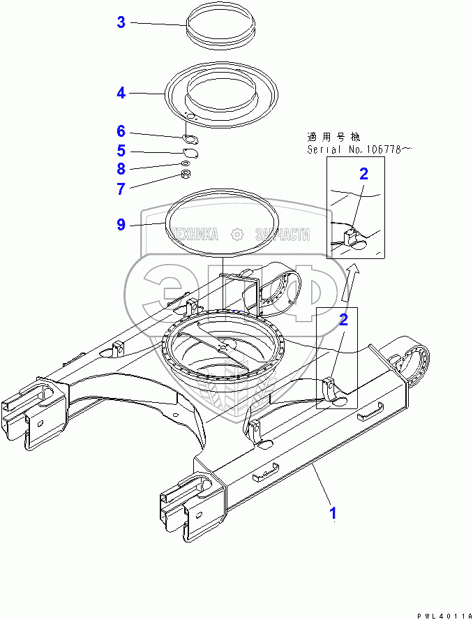 Каталог запасных частей к технике: Komatsu PC200-6. TRACK FRAME(91087-)