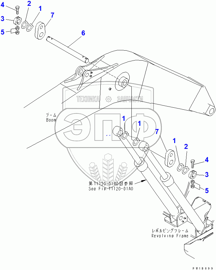 Каталог запасных частей к технике: Komatsu PC200-7. BOOM PIN (SLING)