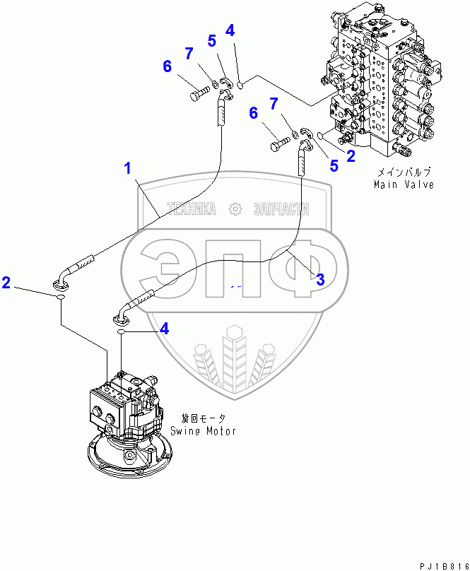Каталог запасных частей к технике: Komatsu PC200-7. SWING PIPING
