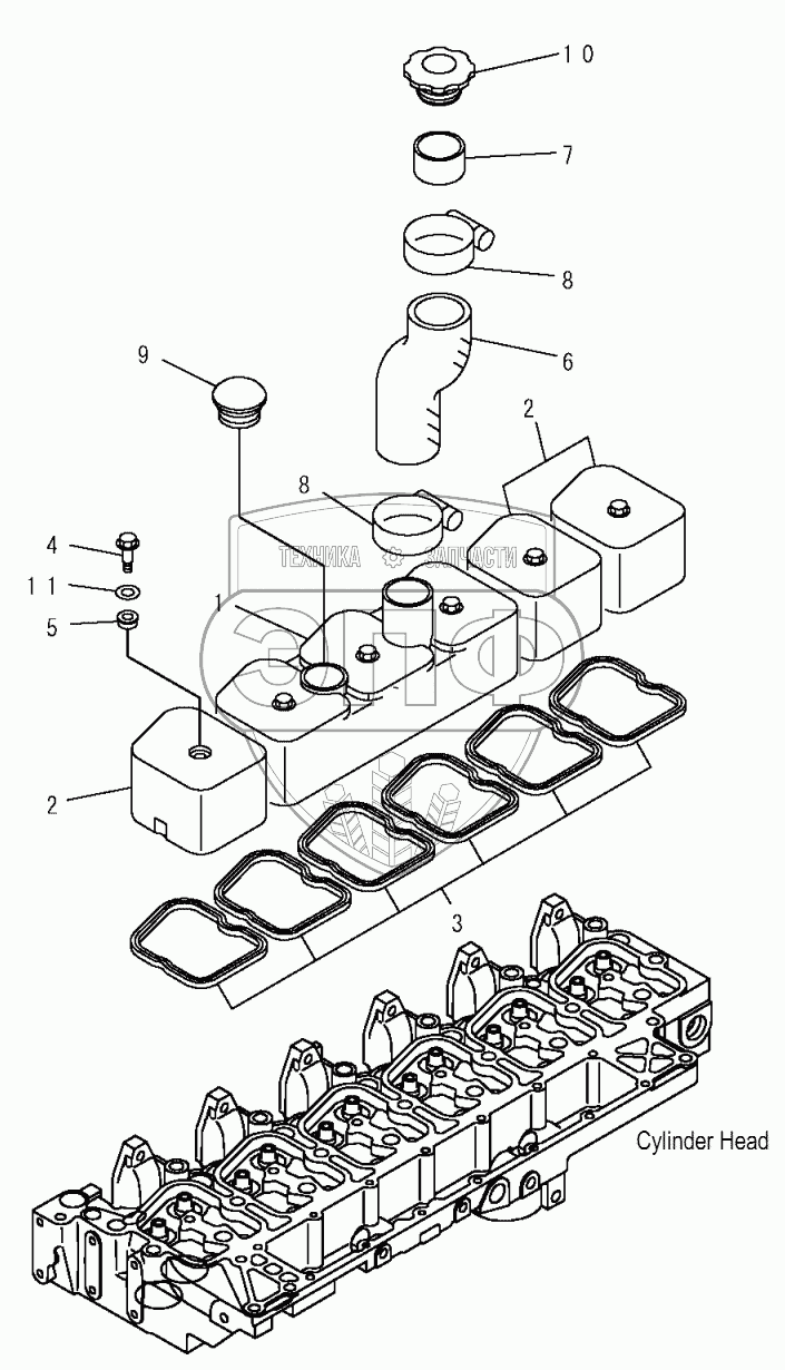 Каталог запасных частей к технике: Komatsu PC200, 210(LC)-7. A111P-01A0 HEAD COVER