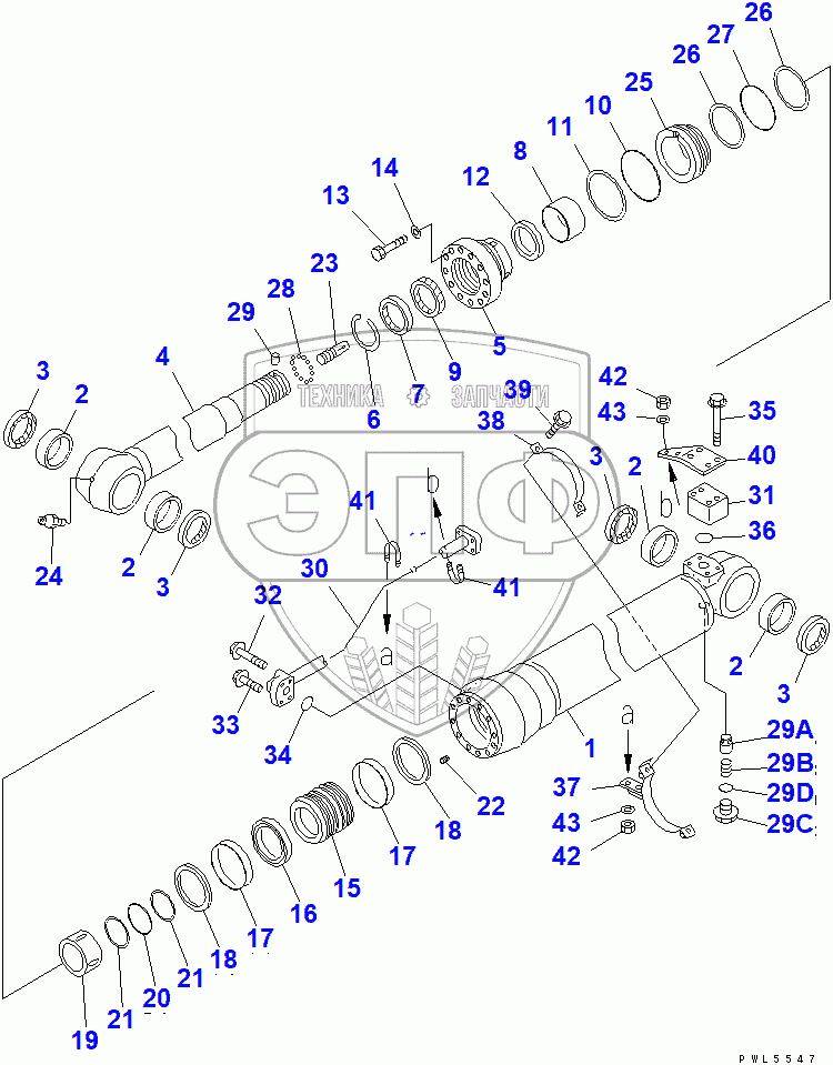 Каталог запасных частей к технике: Komatsu PC200LC-7. ARM CYLINDER