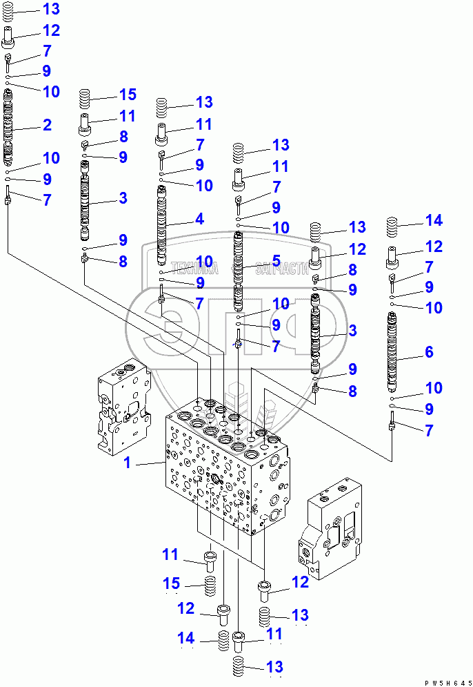 Каталог запасных частей к технике: Komatsu PC200LC-7. CONTROL VALVE (1/16)