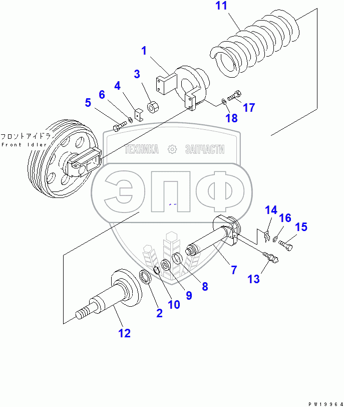 Каталог запасных частей к технике: Komatsu PC200LC-7. IDLER CUSHION(200001-203737)