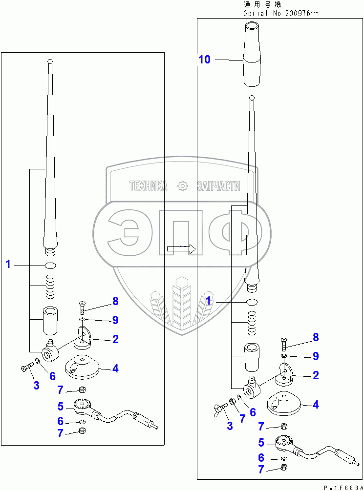 Каталог запасных частей к технике: Komatsu PC200LC-7. RUBBER ANTENNA(200001-257846)