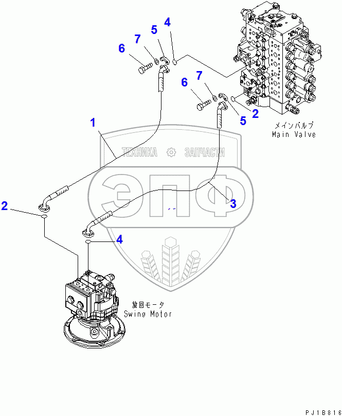 Каталог запасных частей к технике: Komatsu PC200LC-7. SWING PIPING