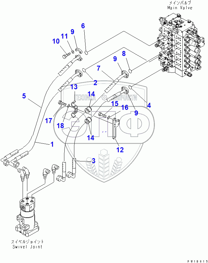 Каталог запасных частей к технике: Komatsu PC200LC-7. TRAVEL PIPING