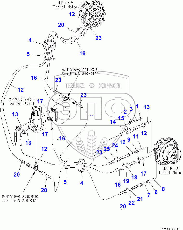 Каталог запасных частей к технике: Komatsu PC200LC-7. TRAVEL PIPING (LC)