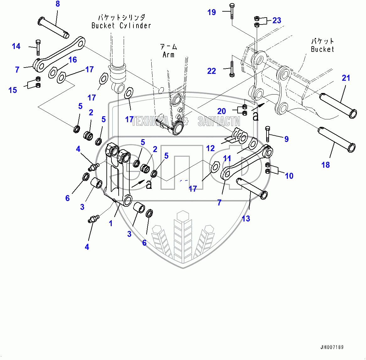 Каталог запасных частей к технике: Komatsu PC200LC-8M0. Arm, Bucket Link (400001-)